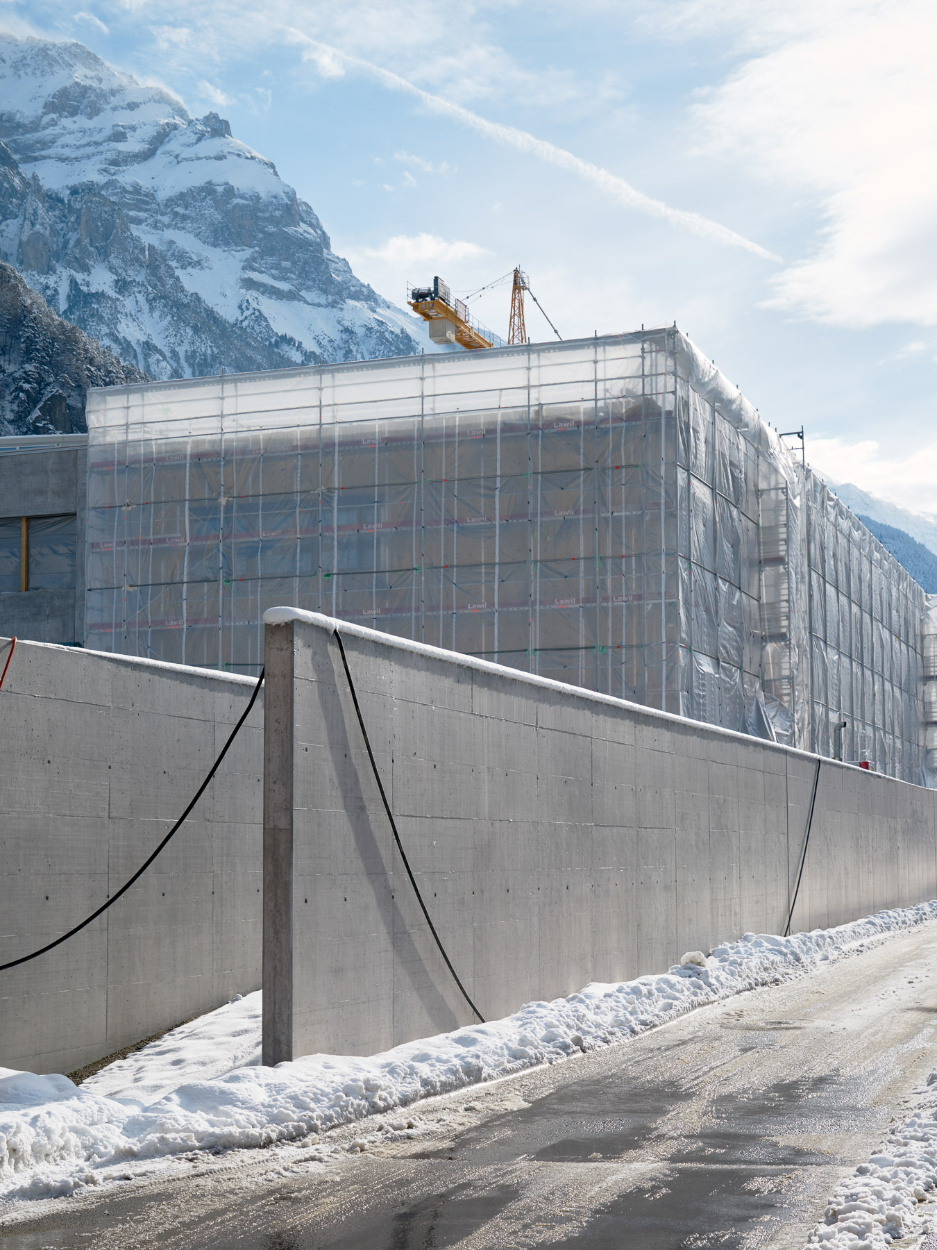 Nous nous rendons à Erstfeld pour être, une dernière fois, tout près de là où tout va se passer. L’entrée et la sortie des deux tubes, élégantes et aérodynamiques, sont intégrées dans une énorme construction rocheuse. Nous montons sur le belvédère qu’ATG a construit à côté du centre visiteurs. A nos pieds règne un calme fantomatique en cette fin d’après-midi de jeudi. Seuls deux ouvriers vêtus d’orange bidouillent sur une armoire électrique sur une voie voisine.