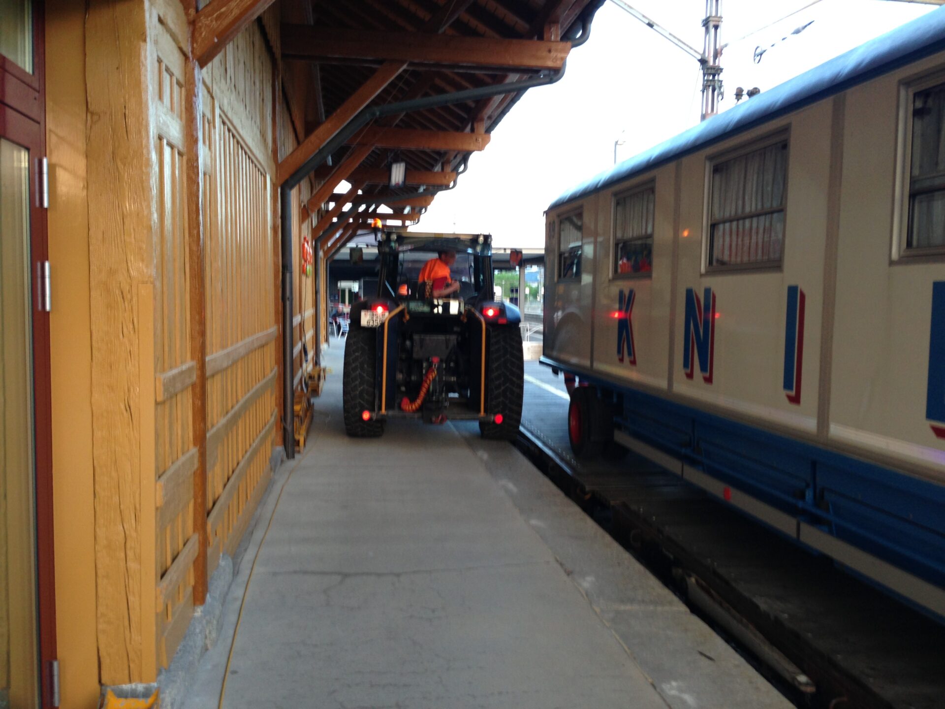 Due dozzine di collaboratori delle tre aziende coinvolte hanno testato di recente la rampa di acciaio mobile durante una giornata uggiosa a Zugo. La rampa è composta da cinque a sette elementi (a seconda del fabbisogno) e ha dimensioni impressionanti: 35 metri di lunghezza per un’altezza regolabile (massimo 1,40 metri). Se le condizioni sono favorevoli può essere montata in due ore da quattro operai con l’aiuto di un’autogru. Il test funziona: oltre ai piccoli rimorchi, il trattore riesce a trasferire sulla rampa e poi sui pianali di FFS Cargo anche il carro pesante della cassa del Circo nazionale. La cassa è vuota, come precisa ridendo un collaboratore di Knie, ma il test funzionerebbe certamente anche con la cassa piena.