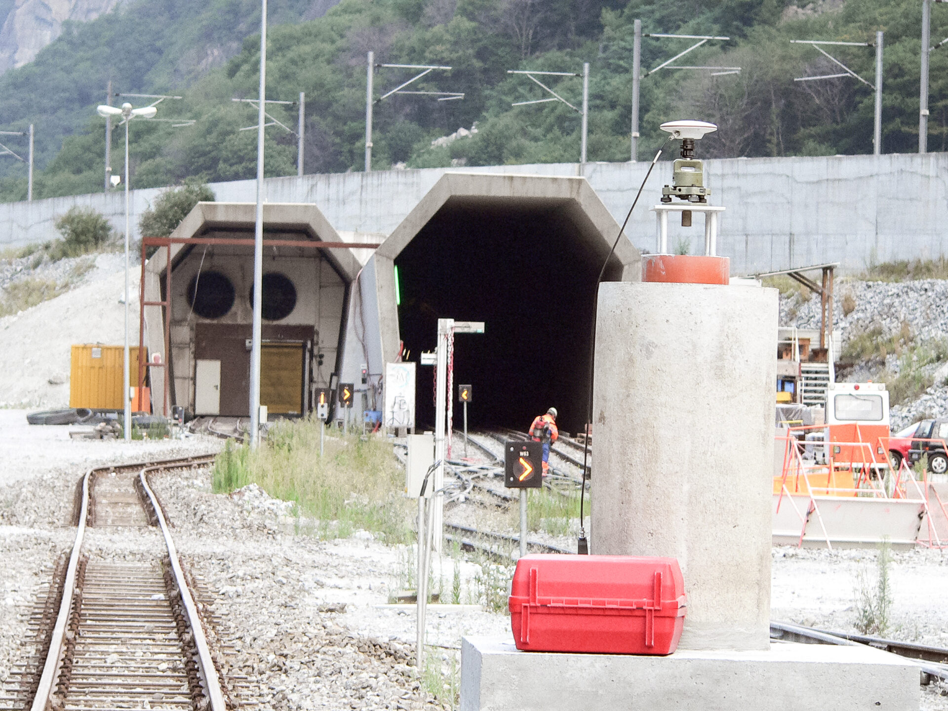 Le enormi dimensioni delle grandi opere sotterranee rendono più difficili le operazioni di misurazione. L’organizzazione dei rilevamenti è particolarmente impegnativa a causa del gran numero di cantieri, della complessità degli accessi e perché i lavori in galleria proseguono 24 ore su 24. Occorre inoltre tenere conto dei fattori che possono falsare i risultati dei rilevamenti. Le differenze di temperatura tra le pareti, dove la roccia può emanare molto calore, e il centro della galleria, piuttosto fresco, possono causare deviazioni dei raggi laser utilizzati dai topografi (refrazione). Perciò, per quanto possibile, lo stativo dello strumento di misurazione deve sempre essere collocato al centro della galleria. Inoltre bisogna tenere in considerazione gli influssi del geoide. È definita geoide la forma esatta della Terra che non corrisponde esattamente a una sfera, per via delle variazioni di densità del manto terrestre e della presenza delle catene rocciose in superficie. Se il modello di riferimento non tenesse conto di questi influssi, le misurazioni presenterebbero errori dell’ordine di metri.
