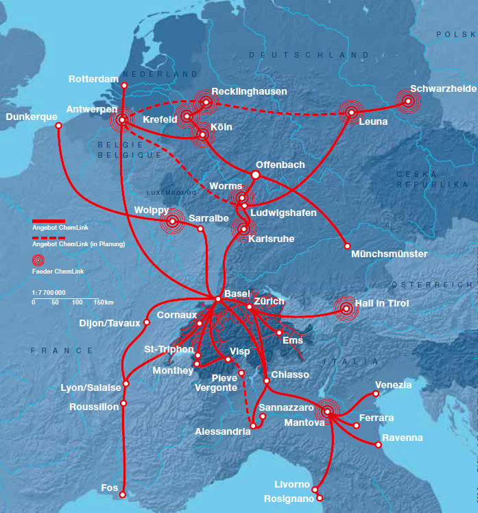 In stretta collaborazione con FFS Cargo, ChemOil ha elaborato un’offerta internazionale per carri completi (ChemLink), che collega i centri economici europei del Belgio all’Italia, attraverso la Germania e la Svizzera, con treni di linea regolari pianificabili. I partner dell’ultimo miglio, accuratamente selezionati, garantiscono la puntualità della consegna e del ritiro dei gruppi di vagoni dalle officine. Il nuovo hub centralizzato di Offenbach assicura ai clienti capacità aggiuntive, un ampliamento dei collegamenti in tutte le direzioni e nuove opzioni per i partner.