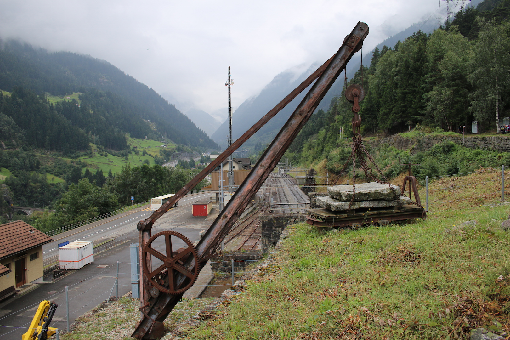 Die rostigen Schotterwägelchen sind auch zu sehen, mit denen die Arbeiter damals die schweren Lasten zu einer Stelle unmittelbar über dem Bahnhof Wassen schoben. Von dort konnten die Steine – unverwüstlicher Gotthardgranit – mit Winden und Kranen direkt in die Bahnwagen verfrachtet werden. Der Schotter wurde über eine Rampe in die Wagen geschüttet.