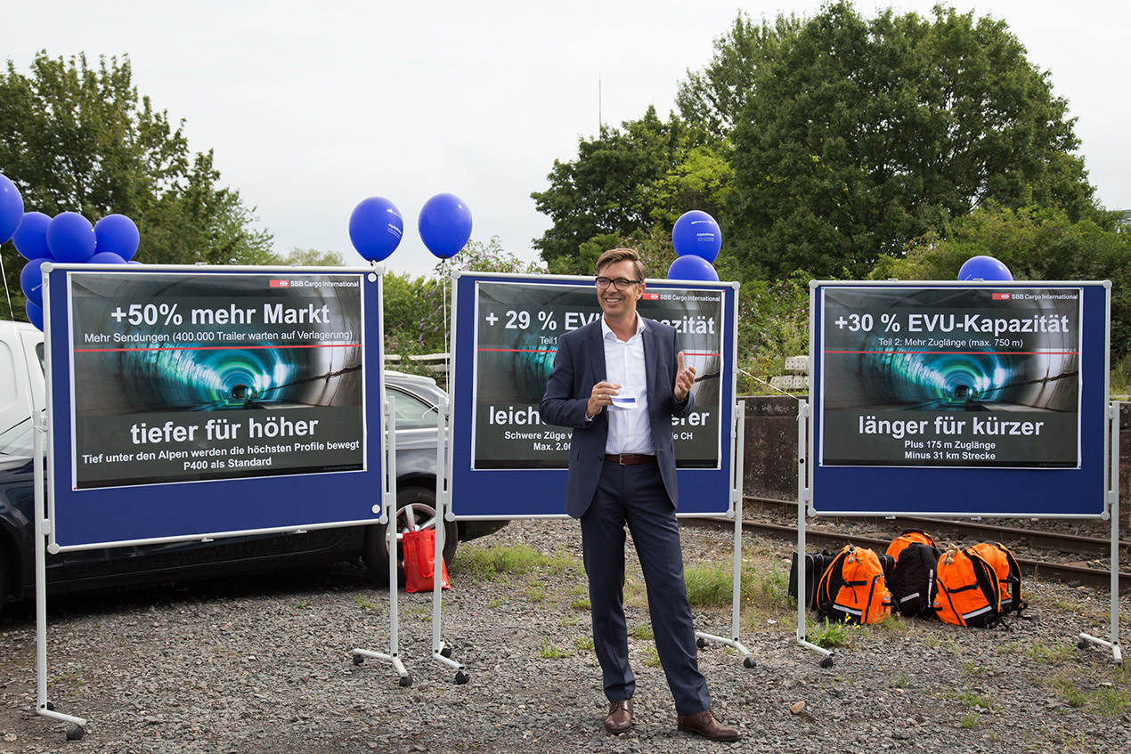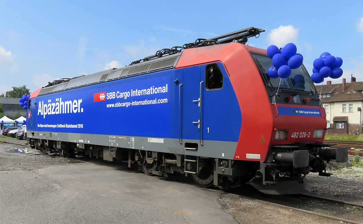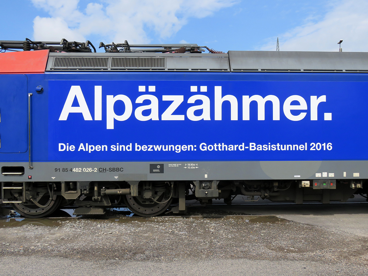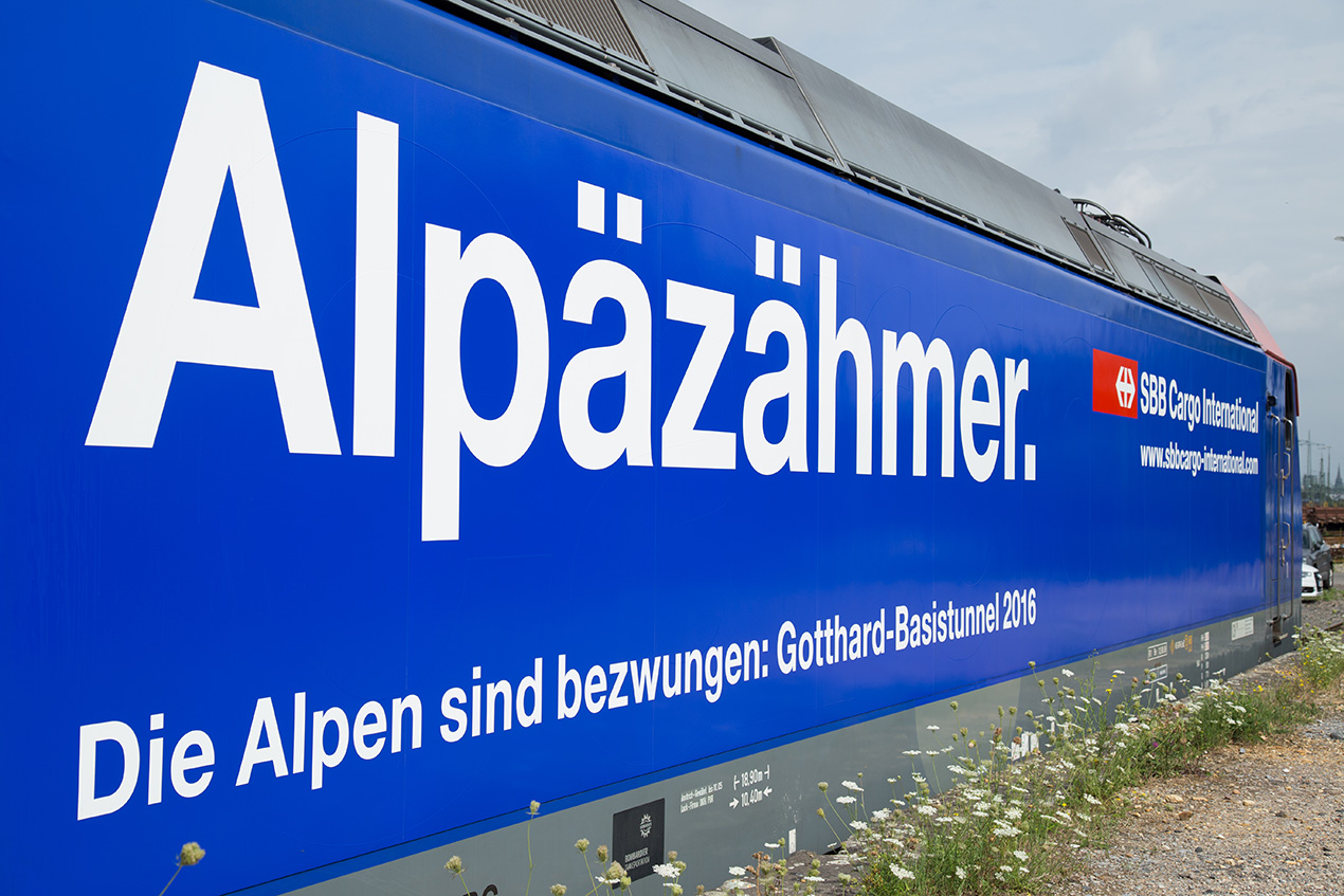In Köln Eifeltor präsentiert das Schweizer Eisenbahnverkehrs-unternehmen SBB Cargo International die erste von neun Lokomotiven im neuen «Alpäzähmer»-Look. «Alpäzähmer» ist eine vom Schweizer Unternehmen SBB Cargo International geschützte Marke, es handelt sich um eine Wortkreation aus dem Substantiv «Alpen» und dem Verb «zähmen». Durch den Gotthard-Basistunnel (Länge: 57 Kilometer) sind die Alpen als Hindernis für den Güterverkehr bezwungen. SBB Cargo International ist das führende Schweizer Eisenbahnverkehrsunternehmen (EVU) auf der Nord-Süd-Achse.